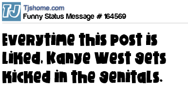 X says Everytime this post is liked, Kanye West gets kicked in the genitals.