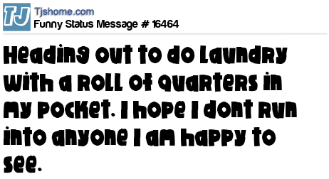 X Heading out to do laundry with a roll of quarters in my pocket. I hope I dont run into anyone I am happy to see.