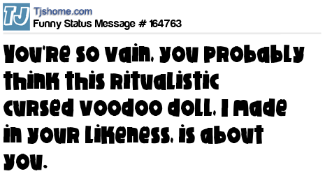 X says You're so vain, you probably think this ritualistic cursed voodoo doll, I made in your likeness, is about you.