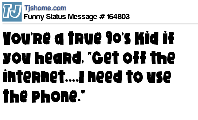 - # 90928 You're a true 90's kid if you've ever heard someone say "Get off the phone, I have to use the Internet."