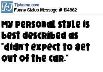 - # 158005 My personal style is best described as "didn't expect to have to get out of the car."
