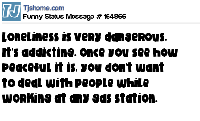 - # 157836 Be careful, Loneliness is dangerous. It's addicting . Once you see how peaceful it is, you don't wanna deal with people ever again.