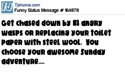 X says Get chased down by 83 angry wasps or replacing your toilet paper with steel wool.  You choose your awesome Sunday adventure....