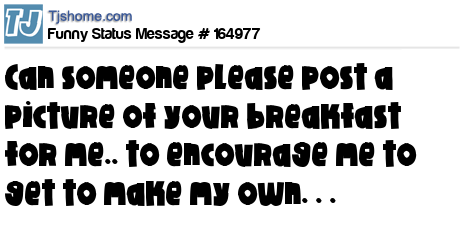 X says Can someone please post a picture of your breakfast for me.. to encourage me to get to make my own. . .