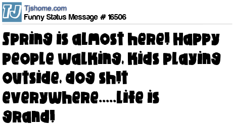 X is Spring is almost here! Happy people walking, kids playing outside, dog sh!t everywhere.....Life is grand!