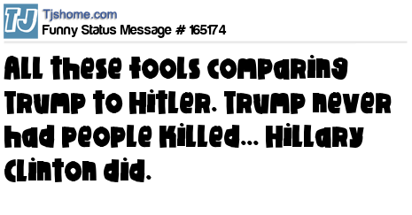 X says All these fools comparing Trump to Hitler. Trump never had people killed... Hillary Clinton did.
