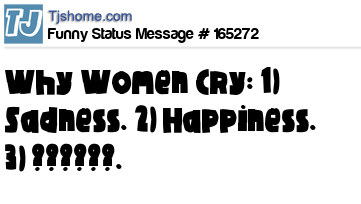 X says Why Women Cry: 1) Sadness. 2) Happiness. 3) ??????.