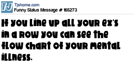 - # 169815 If you line up all your ex lovers in a row you can see the flow chart of your mental illness.