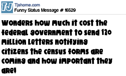 - # 16553 It's costing taxpayers $85 million to send out census reminders...BRILLIANT!