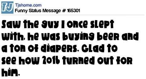 X says Saw the guy I once slept with, he was buying beer and a ton of diapers. Glad to see how 2016 turned out for him.