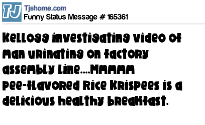 X says Kellogg investigating video of man urinating on factory assembly line....Mmmmm pee-flavored Rice Krispees is a delicious healthy breakfast.