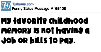 X says My favorite childhood memory is not having a job or bills to pay.