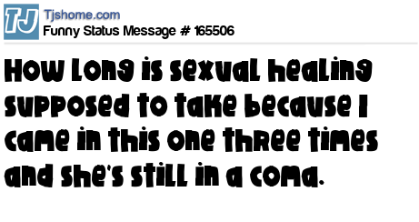 X says How long is sexual healing supposed to take because I came in this one three times and she's still in a coma.