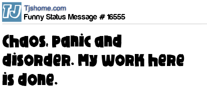 - # 17300 CHAOS, PANIC & DISORDER... I CAME, I SAW & I CONQUERED... MY WORK HERE IS DONE... NOW PUT THAT ON MY RESUME!!
