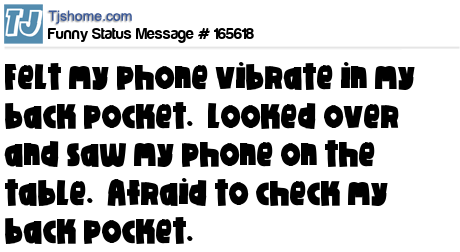 X says Felt my phone vibrate in my back pocket. Looked over and saw my phone on the table. Afraid to check my back pocket.