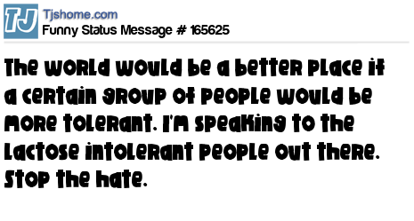 X is The world would be a better place if a certain group of people would be more tolerant. I'm speaking to the lactose intolerant people out there. Stop the hate.