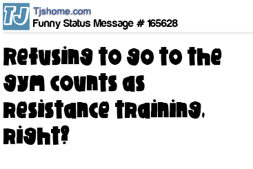 - # 185482 Does refusing to go to the gym count as resistance training?