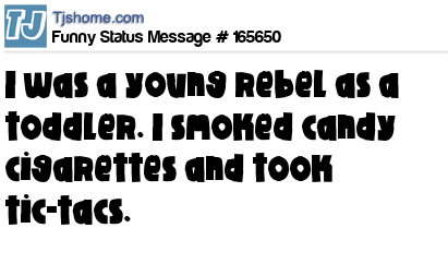- # 85724 Candy cigarettes are a gateway drug to rock candy.
