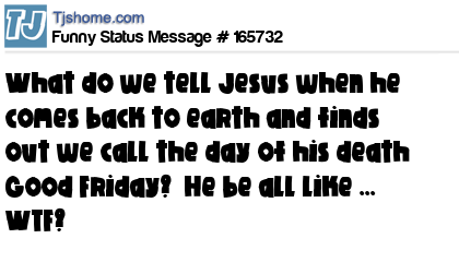 X says What do we tell Jesus when he comes back to earth and finds out we call the day of his death Good Friday?  He be all like ... WTF?