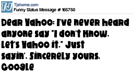 - # 43958 Dear Yahoo, Ive never heard someone say "i dunno lets 'Yahoo It." Just Saying. Sincerely, Google.