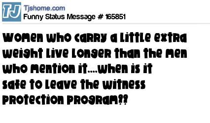 X says Women who carry a little extra weight live longer than the men who mention it....when is it safe to leave the witness protection program??