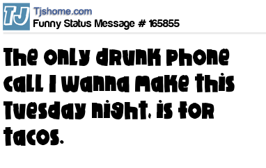X says The only drunk phone call I wanna make this Tuesday night, is for tacos.