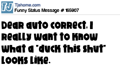 X Dear auto correct, I really want to know what a "duck this shut" looks like.