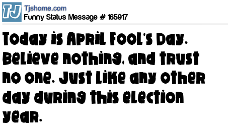 X says Today is April Fool's Day. Believe nothing, and trust no one. Just like any other day during this election year.