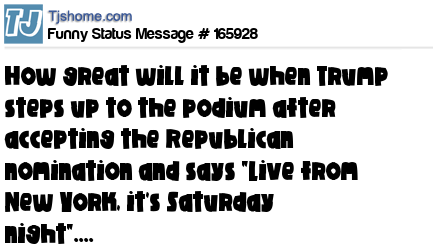 X How great will it be when Trump steps up to the podium after accepting the Republican nomination and says "Live from New York, it's Saturday night"....