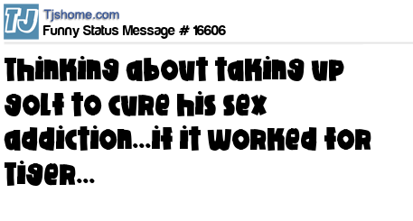 X is thinking about taking up golf to cure his sex addiction...if it worked for Tiger...