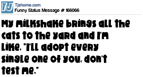 X says My milkshake brings all the cats to the yard and I'm like, "I'll adopt every single one of you, don't test me."