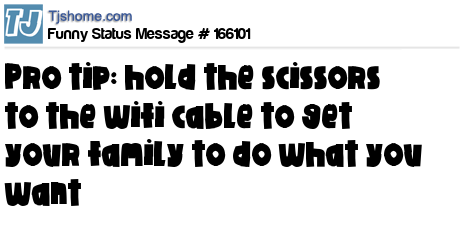 X says Pro tip: hold the scissors to the wifi cable to get your family to do what you want