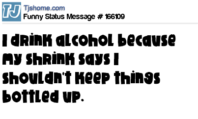 X says I drink alcohol because my shrink says I shouldn't keep things bottled up.
