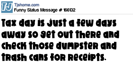 - # 176852 Remember folks tax day is coming up... make sure you check nearby dumpsters and trash cans for those receipts.