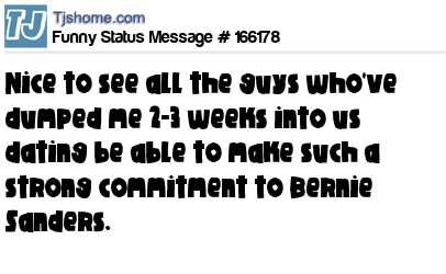 X says Nice to see all the guys who've dumped me 2-3 weeks into us dating be able to make such a strong commitment to Bernie Sanders.