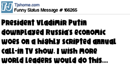 X says President Vladimir Putin downplayed Russia's economic woes on a highly scripted annual call-in TV show. I wish more world leaders would do this....