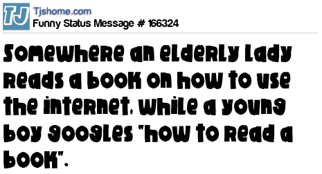 X says Somewhere an elderly lady reads a book on how to use the internet, while a young boy googles "how to read a book".