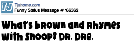 - # 37136 whats BROWN and Rhymes with Snoop???? Dr. Dre
