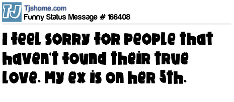 X says I feel sorry for people that haven't found their true love. My ex is on her 5th.