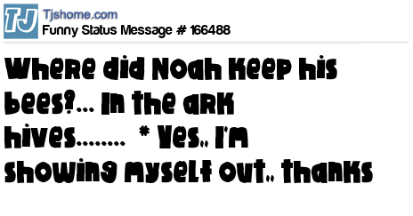 X says Where did Noah keep his bees?... In the ark hives........ * Yes,, I'm showing myself out,, thanks