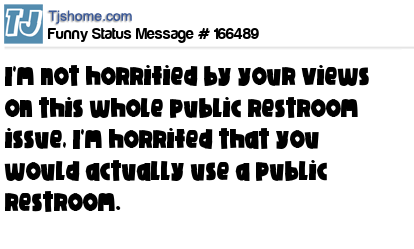 X says I'm not horrified by your views on this whole public restroom issue, I'm horrifed that you would actually use a public restroom.