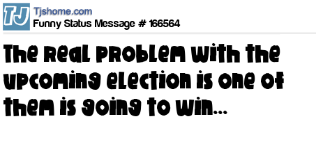 - # 161151 We have a presidential election coming up... And I think the big problem, of course, is someone will win.