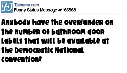 X says Anybody have the over/under on the number of bathroom door labels that will be available at the Democratic National Convention?