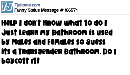 X says Help I don't know what to do I just learn my Bathroom is used by Males and Females so guess its a Transgender Bathroom. Do I boycott it?
