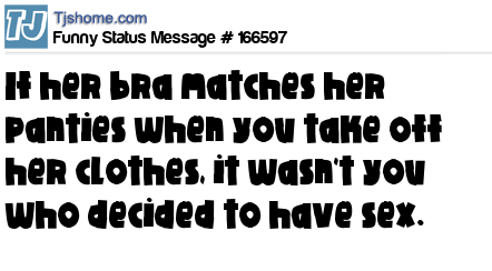 X says If her bra matches her panties when you take off her clothes, it wasn't you who decided to have sex.
