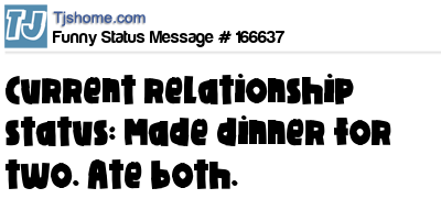 X says Current relationship status: Made dinner for two. Ate both.