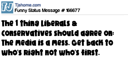 X says The 1 thing Liberals & Conservatives should agree on: The media is a mess. Get back to who's right not who's first.