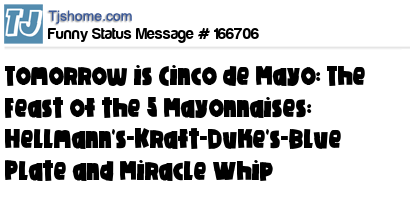 - # 99105 Happy Cinco De Miracle Whip ... I DON'T CARE FOR MAYO :)