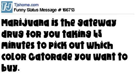 X says Marijuana is the gateway drug for you taking 45 minutes to pick out which color Gatorade you want to buy.