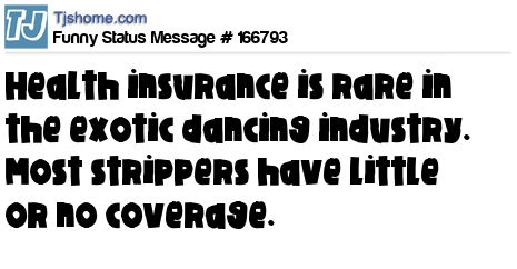 X says Health insurance is rare in the exotic dancing industry. Most strippers have little or no coverage.